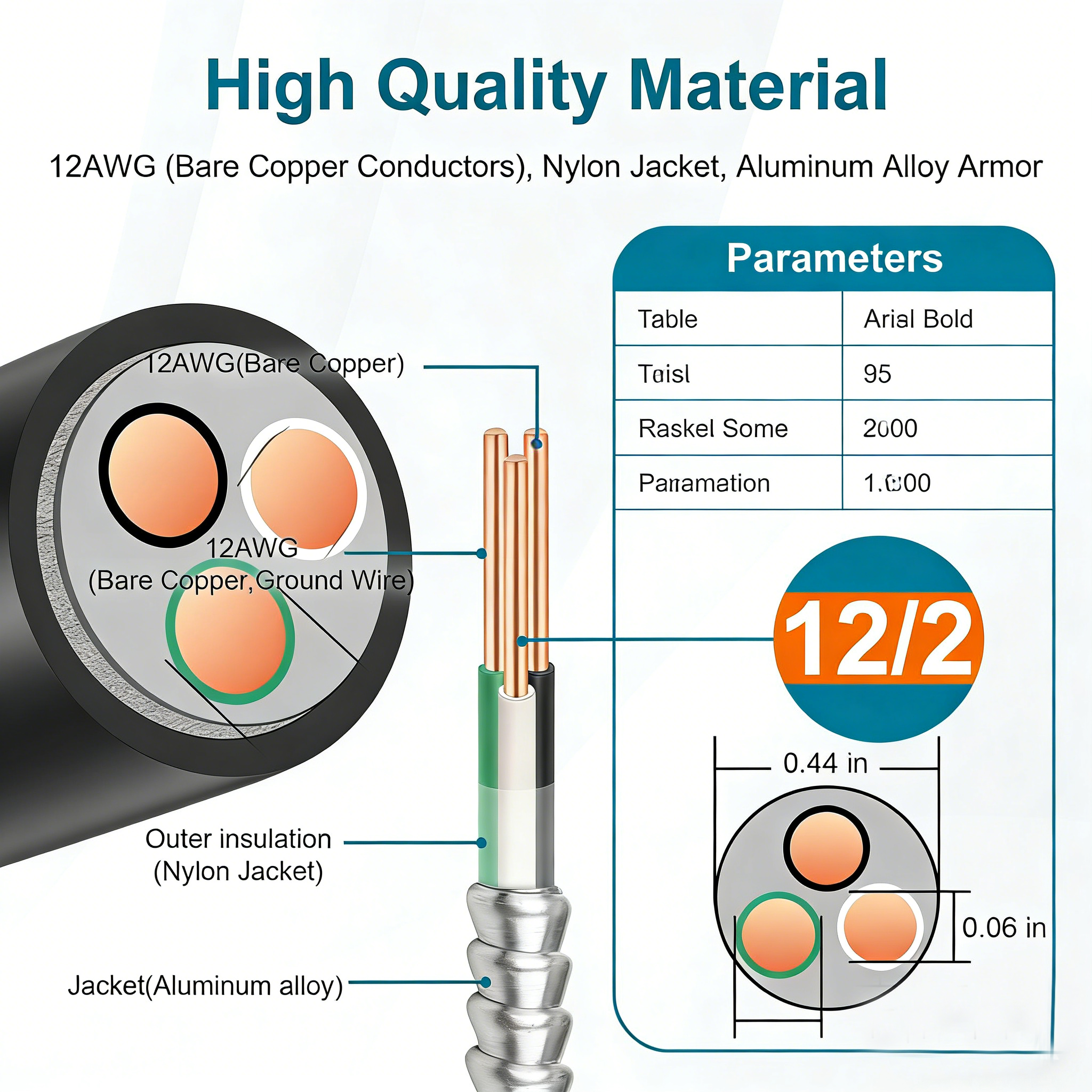 Especificación profesional de calibre 14 para transmisión de energía estable Diseñado como un cable MC de calibre 14, ofrece una capacidad confiable de conducción de corriente, satisfaciendo la demanda de potencia en aplicaciones industriales, de construcción e ingeniería eléctrica. El conductor de tierra integrado garantiza el cumplimiento con las normas de seguridad eléctrica, minimizando los riesgos de fuga de electricidad y mejorando la seguridad general del circuito.